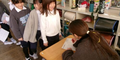 2026年2月19日 環境(かんきょう)ボランティア委員会(いいんかい)の活動(かつどう) 先日(せんじつ)、環境(かんきょう)・ボランティア委員会(いいんかい)」が、子(こ)どもたちを代表(だいひょう)して、集(あつ)まったペットボトルキャップを、前期(ぜんき)の終(お)わりと後期(こうき)の終(お)わりに委託(いたく)しているJAみえなか市支店(ししてん)にお願(ねが)いして、工場(こうじょう)に持(も)って行(い)ってもらっていることをお伝(つた)えしました。 カテゴリー 学校活動の様子