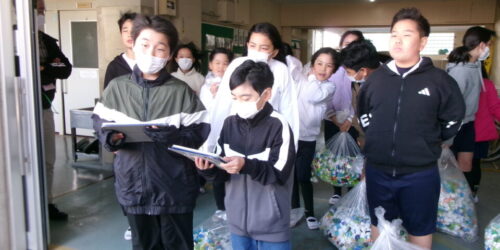 2025年9月25日 ペットボトルキャップ回収(かいしゅう) eco 第四小学校(だいよんしょうがっこう)では、ボランティア委員会(いいんかい)の子(こ)たちが中心(ちゅうしん)となってペットボトルキャップの回収(かいしゅう)をしています。 ゴミとして捨(す)てるのではなく、集(あつ)めてリサイクル工場(こうじょう)へ届(とど)けることで、清掃工場(せいそうこうじょう)のゴミが削減(さくげん)されて二酸化炭素(にさんかたんそ)の排出量(はいしゅつりょう)を減(へ)らすことができます。 カテゴリー 学校活動の様子/コミュニティ・スクール