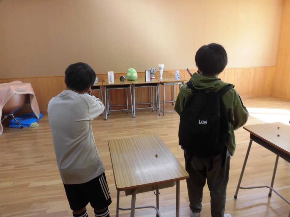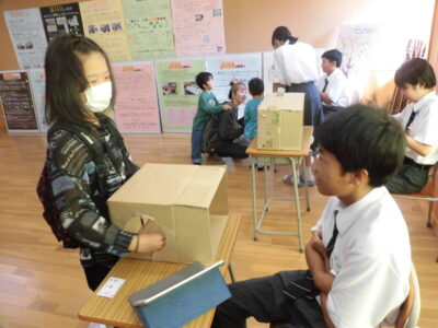 校舎の中では、鎌中の生徒さんが企画してくれた、射的、箱の中身あて、リアル脱出ゲーム、入れ物づくりなどで楽しみました。