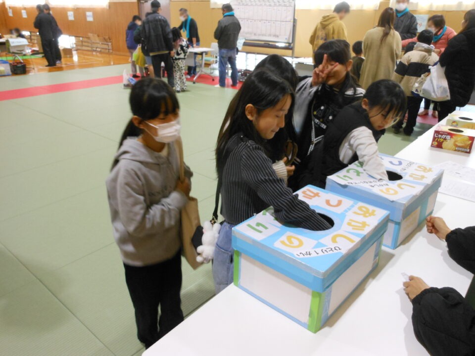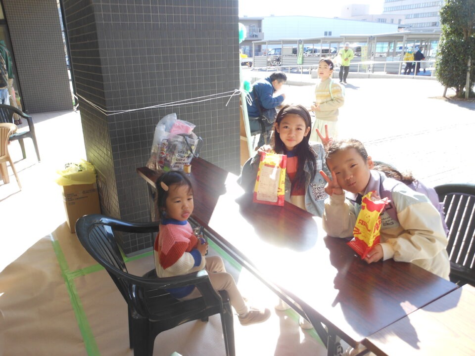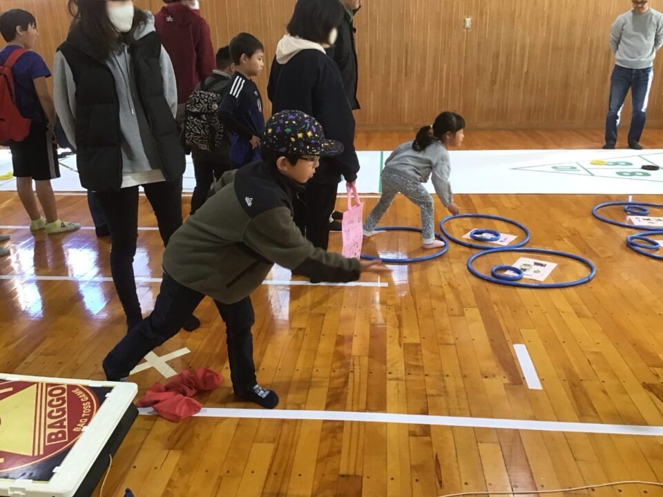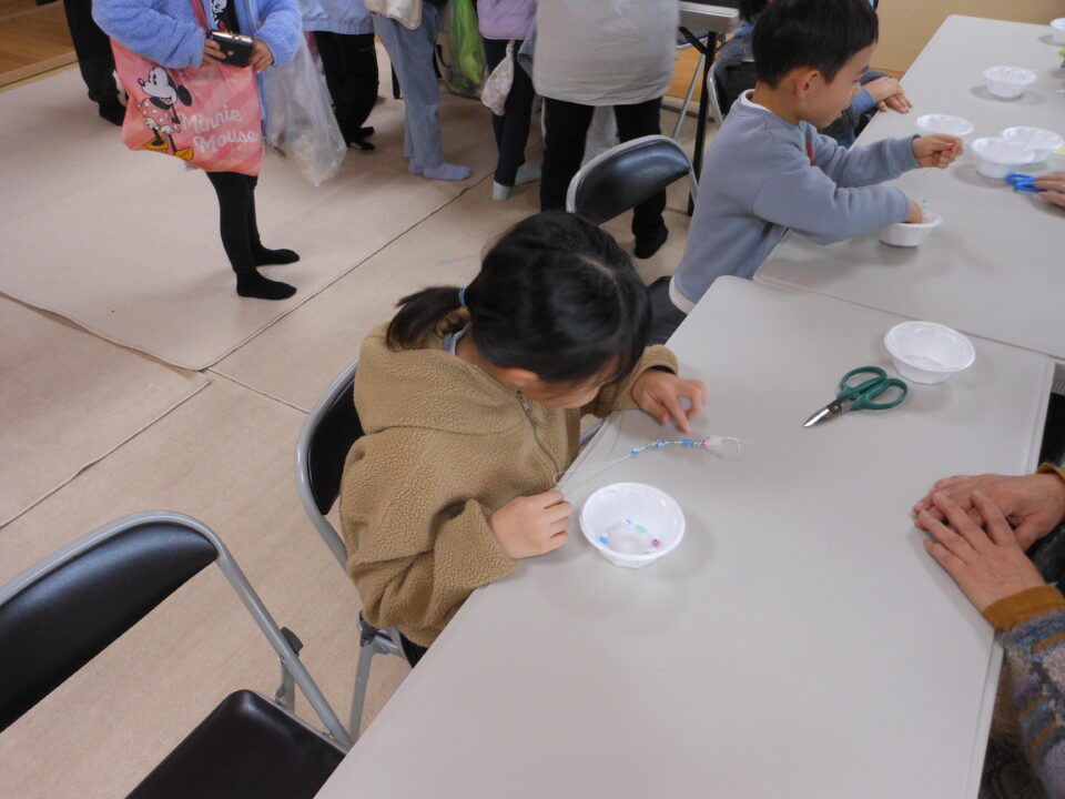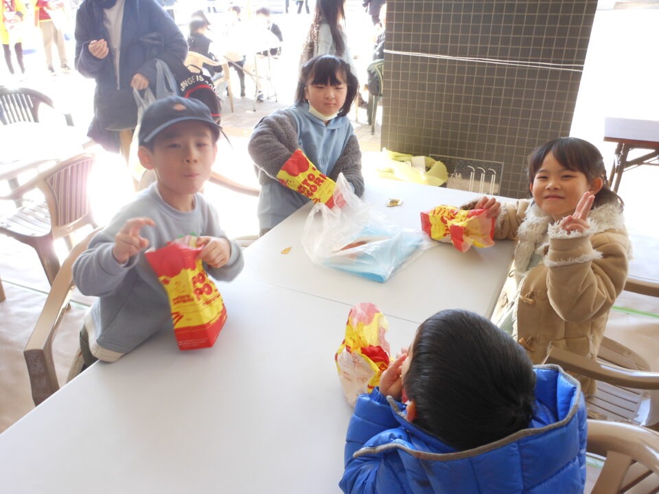 第四小の子どもたちもたくさん参加し、ゲームやニュースポーツ、アクセサリー作りを楽しんだり、フランクフルトやカステラを食べたりしました。