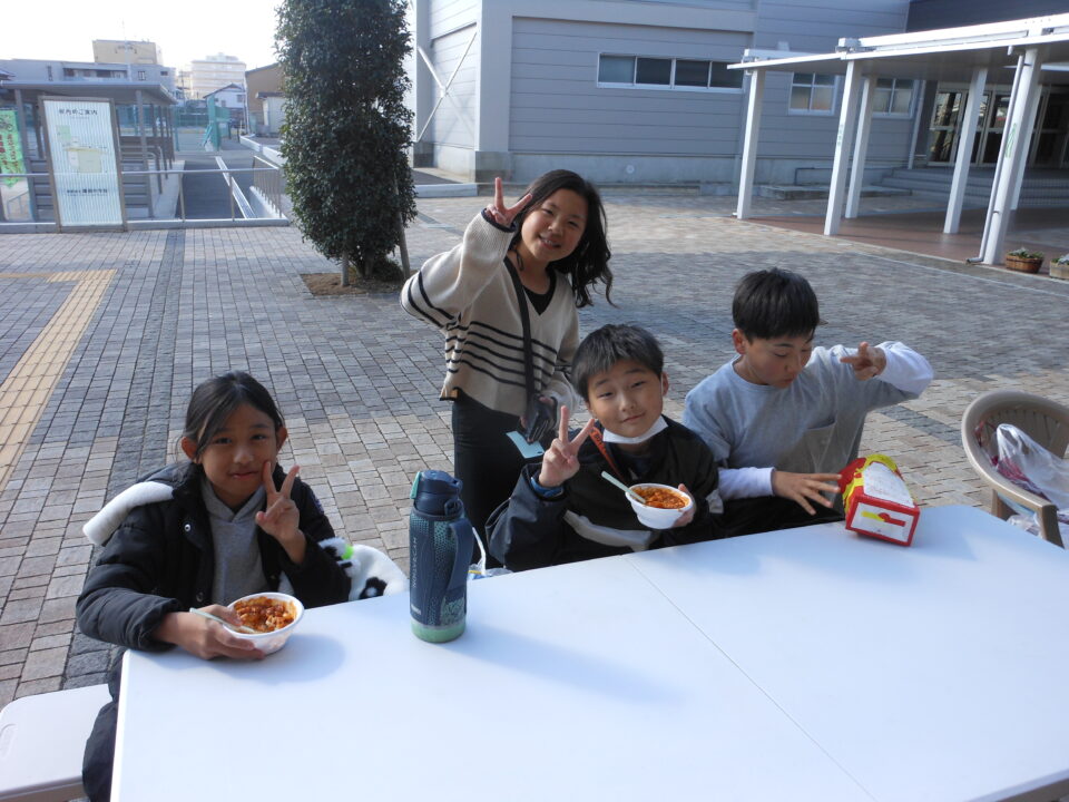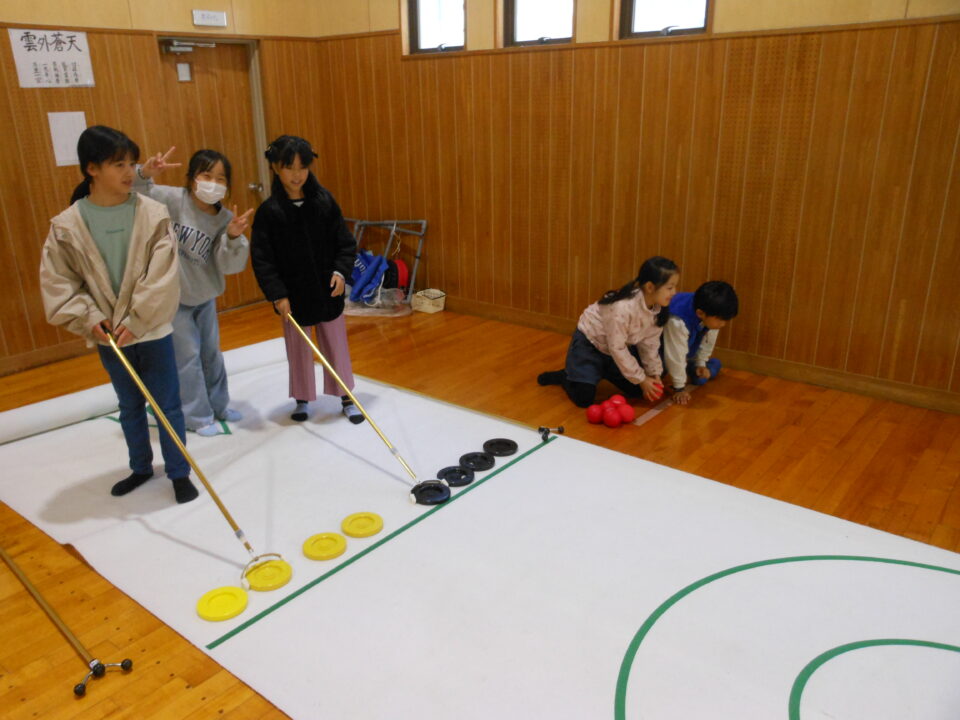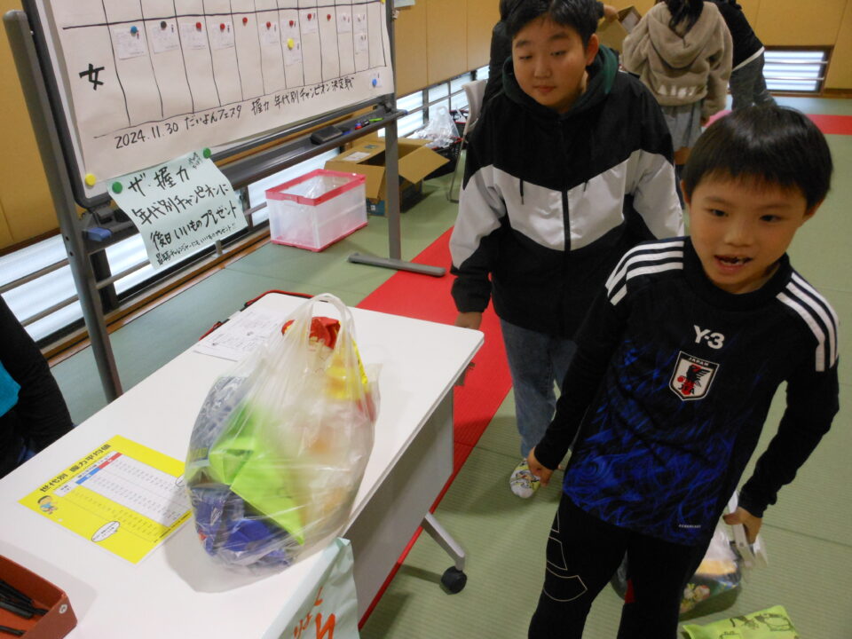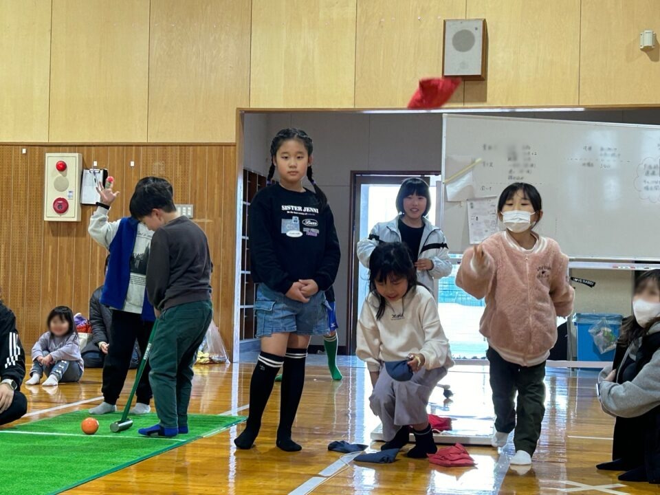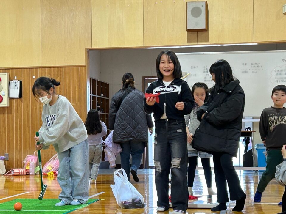 第四小の子どもたちもたくさん参加し、ゲームやニュースポーツ、アクセサリー作りを楽しんだり、フランクフルトやカステラを食べたりしました。