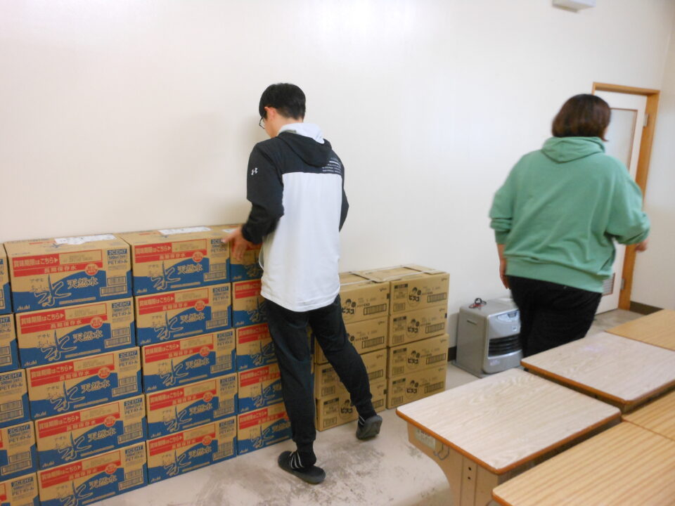 ここ最近、日本各地で大きな地震が頻発しています。それを受けてPTA執行部からの提案で、もしも子どもたちが学校にとどまらないといけないことになった時のために、PTA費で災害備蓄用保存水とビスケットを購入しました。