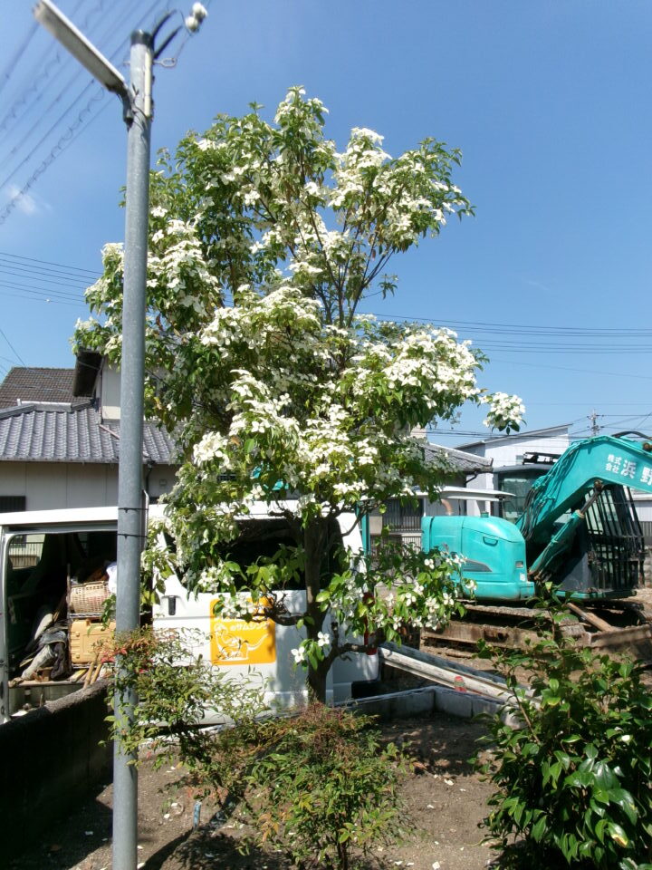 こわされるときに、にわえてあったヤマボウシがとてもきれいで、学校がっこうほうゆずってくださり、えていただきました。