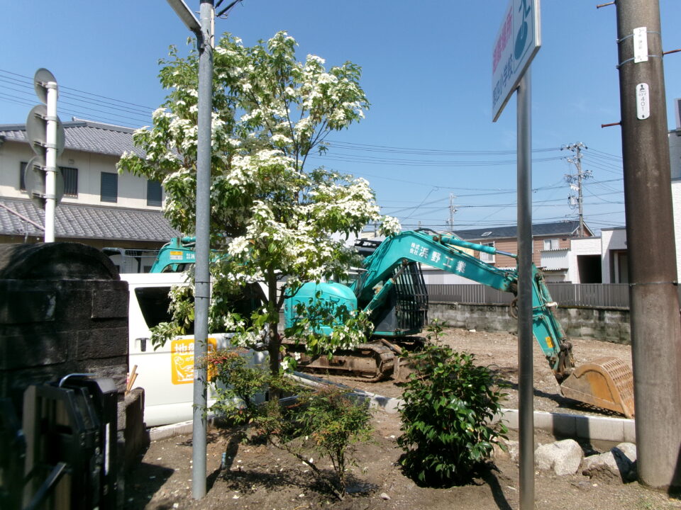 現在げんざい小学校西側隣接しょうがっこうにしがわりんせつのおうち工事こうじおこなってみえます。