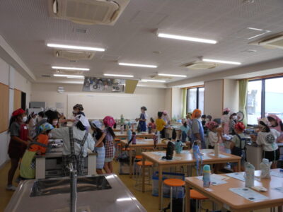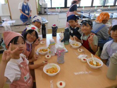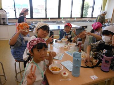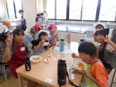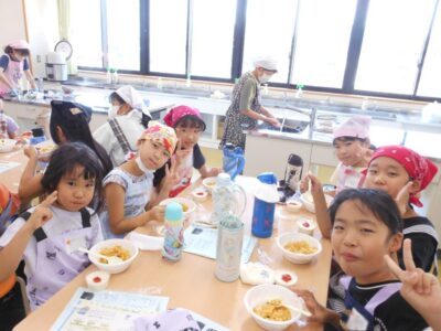 今日も昨日に引き続き、地域交流センター(鎌田中学校内)で、公民館講座「夏休み子ども料理教室」がありました。