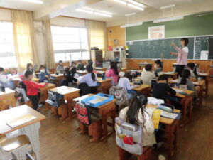 年生ねんせいでは、「めあて」と「ふりかえり」のかた学習がくしゅうしていました。