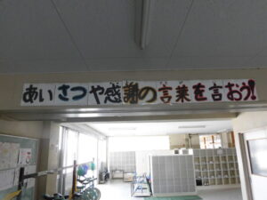 家庭かてい地域ちいきでも挨拶あいさつをかわし、笑顔えがあふれる学校がっこう校区こうくにしていきたいとおもいます。
