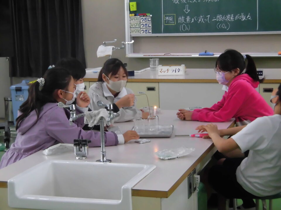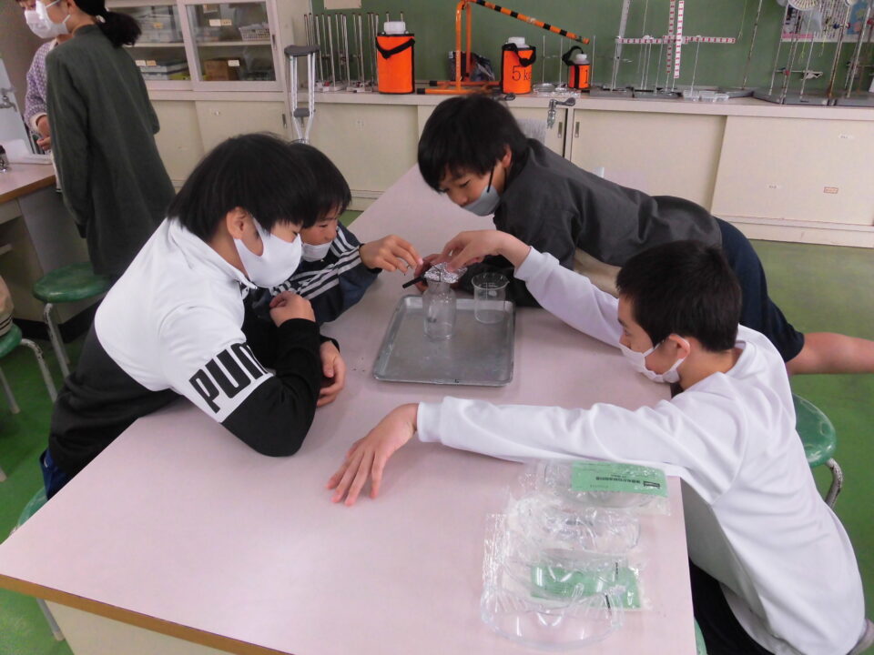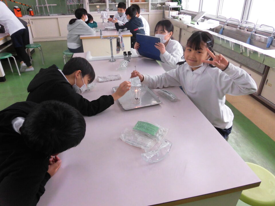 年生ねんせいは、理科りか実験じっけんをしていました。