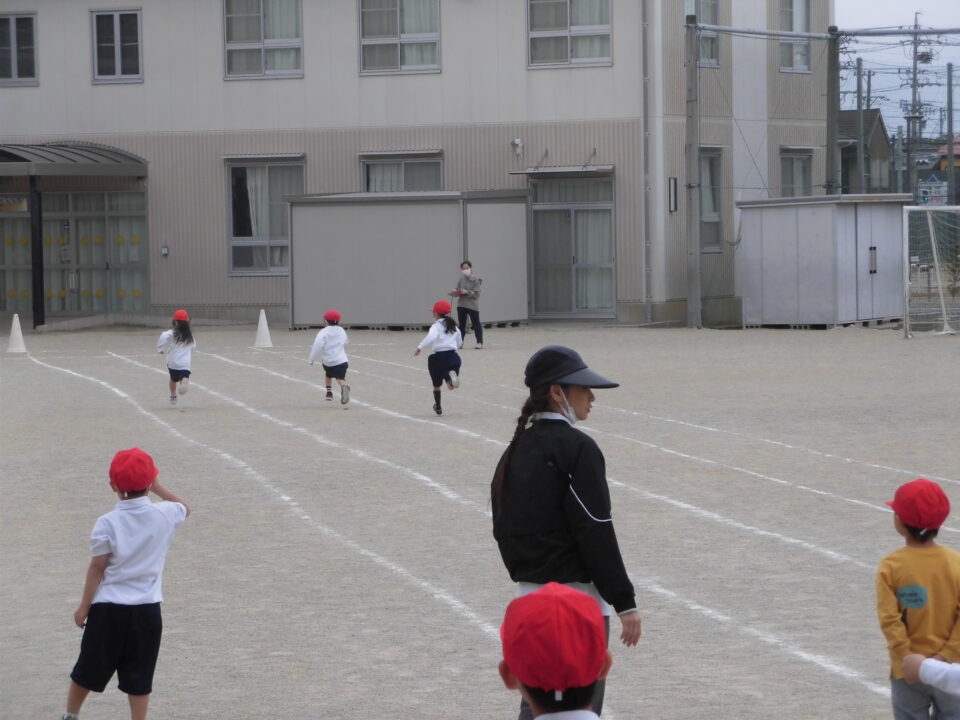 年生ねんせいは、50mを全力ぜんりょくはしっていました。