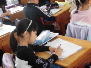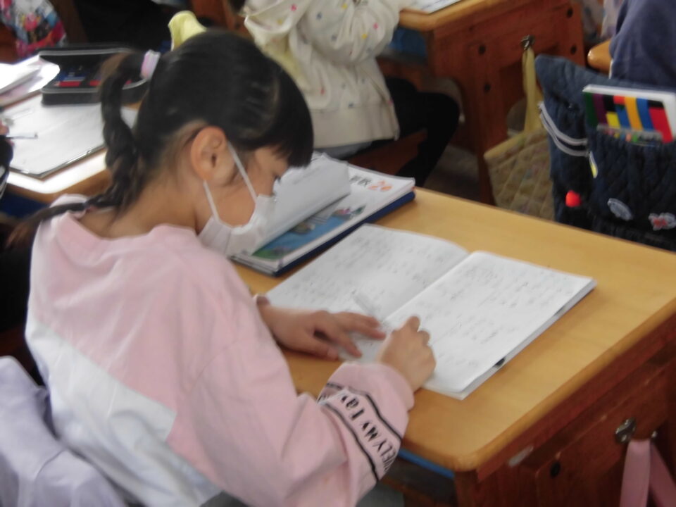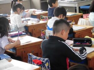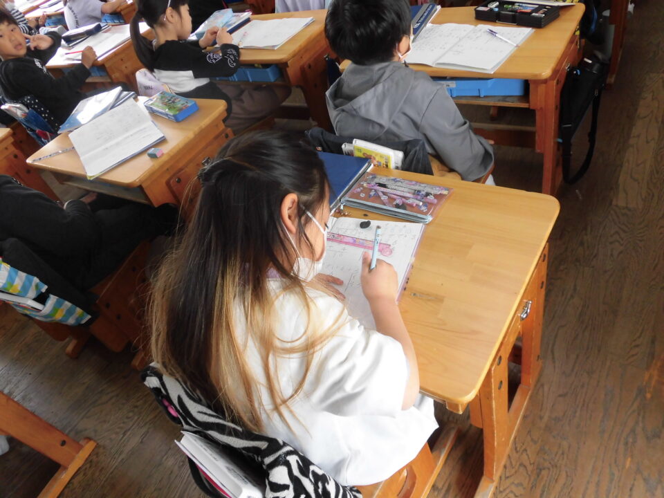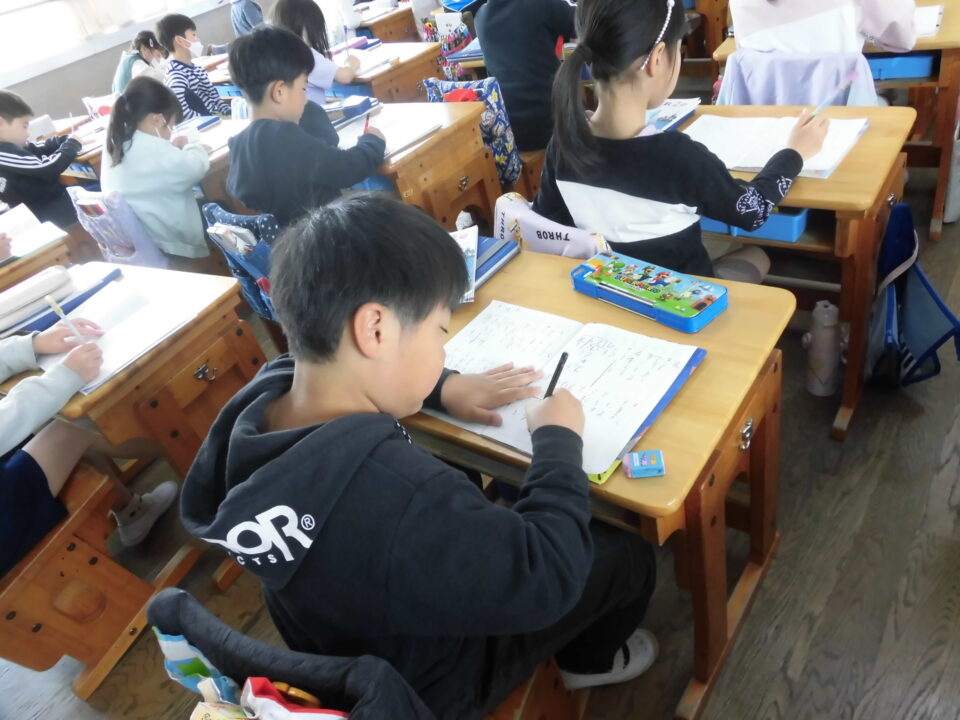 年生ねんせいでは、「めあて」と「ふりかえり」のかた学習がくしゅうしていました。