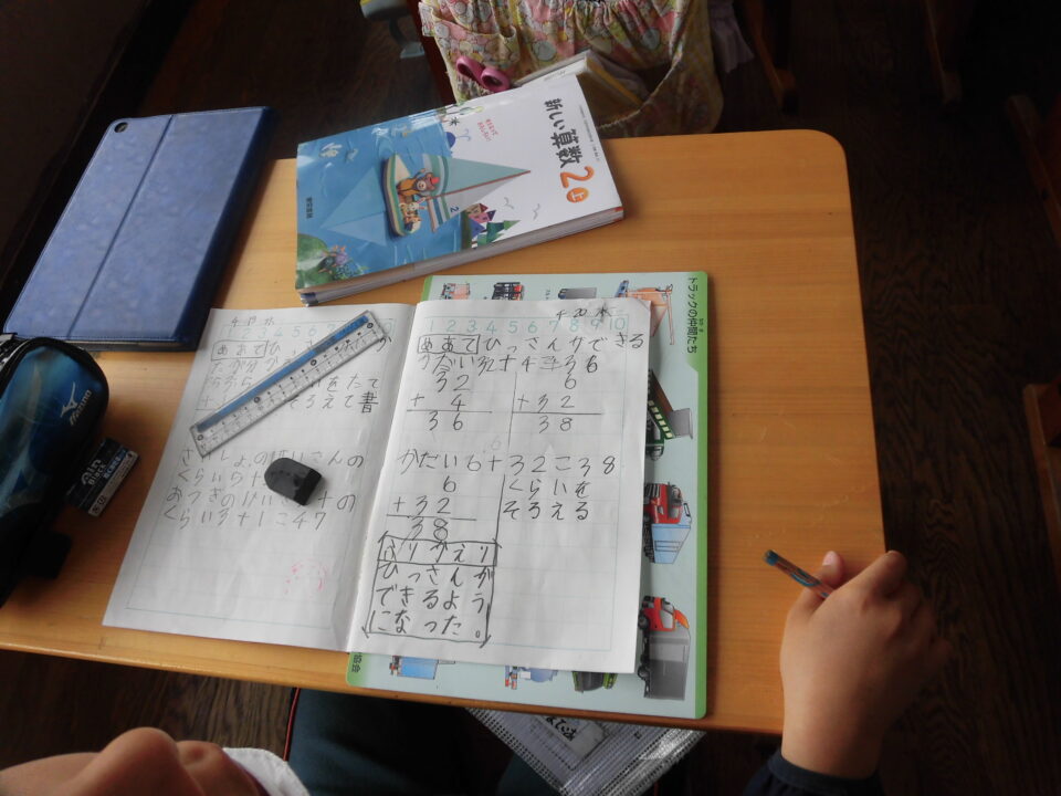 ノートのもていねいで、鉛筆えんぴつをしっかりって、自分じぶんかえりをしていますね。