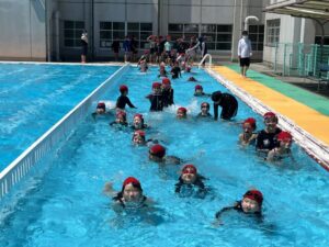 心肺蘇生法講習会を受講いただき、水泳授業の監視をしていただいています。本当にありがとうございます。残りわずかですが、安全に気を付けて、久々の水泳授業を楽しみたいと思います。