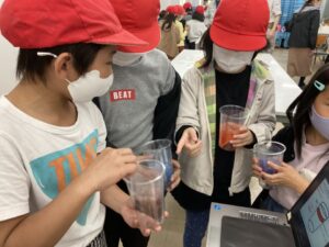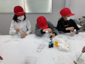 お楽しみの保冷剤づくりです。原料の配合を聞いて、オリジナルの保冷剤を作りました。