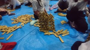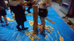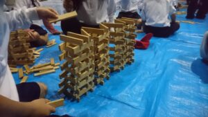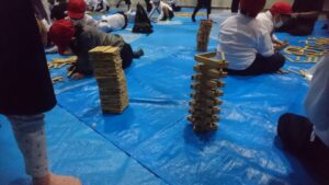 みえこどもの城でした。中に入ると、カプラの大作がずらりと並んでいて圧巻でした。