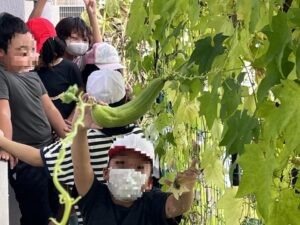 4年生がヘチマの観察をしていました。ずいぶん大きくなっていて、子どもたちも大喜びです。