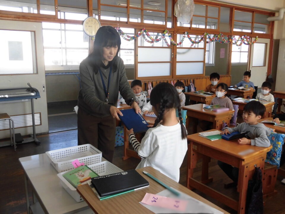 ホーム > 学校活動の様子 1年生(ねんせい)タブレット貸与式(たいよしき)を行(おこな)いました。 松阪市(まつさかし)では、1人(ひとり)に1台(だい)タブレット端末(たんまつ)を貸(か)し出(だ)しています。 今日(きょう)は、一人(ひとり)ひとりにタブレット端末(たんまつ)を渡(わた)す『タブレット端末貸与式(たんまつたいよしき)』をしました。 卒業(そつぎょう)まで使(つか)いますので、ていねいに、大切(たいせつ)に使(つか)いましょうね。 シェアする Twitter でシェア はてなブックマークに保存 LINE でシェア Facebook でシェア Pocket に保存 Feedly で購読 関連投稿 学校活動の様子 / コミュニティ・スクール 3年生算数(ねんせいさんすう)では、分数(ぶんすう)を学習(がくしゅう)しているよ! 学校活動の様子 授業風景 学校活動の様子 合唱合奏の放送 学校活動の様子 後期始業式 学校活動の様子 4年コアラの会 学校活動の様子 Wednesday English 前の投稿 学校(がっこう)だより『だいよんだより』№1 次の投稿 地区別下校(ちくべつげこう)をしています。