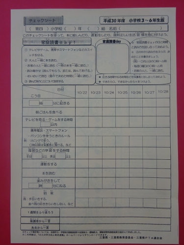 今週中に、学校と家庭でお家の過ごし方について話し合ったり決めたりして、22日より取組を行います。(チェックシートは10月17日~19日の間にお家へ持ち帰ります)