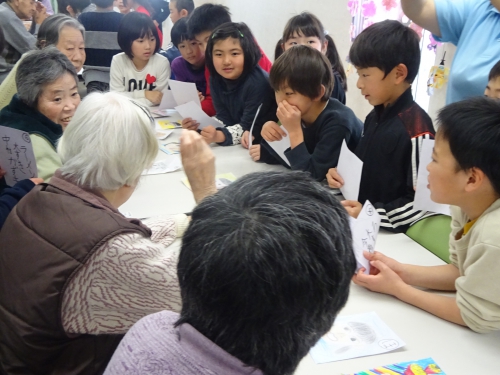 文化祭の時に、見事に成功した演奏等を聞いていただき、子どもたちが作ったカルタを一緒にしていただきました。カルタはかけがえのない大切な自分を紹介する札になっています。地域の方々と交流する機会をもたせていただき、子どもたちも元気をいただき、自信も生まれ学ぶ意欲へとつながっていきます。