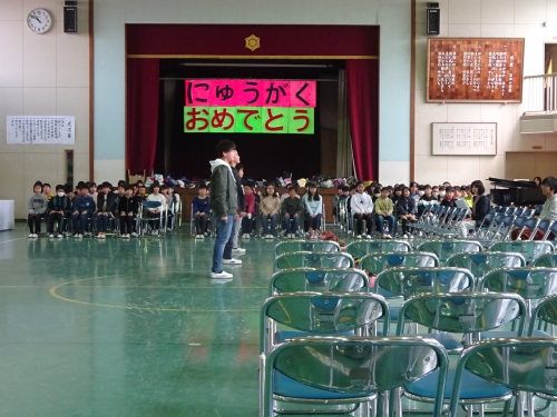 新6年生が登校し、入学式の準備をしてくれました。