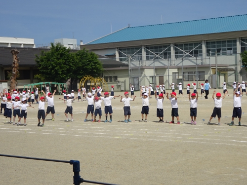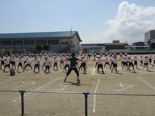 3・4年生は「第四ソーラン2019」を、1・2年生は「スカッとジャンプ」を元気よく踊っていました。一日中、暑さに負けずに運動場や体育館から頑張る子どもたちや職員の様子が伝わってきます。