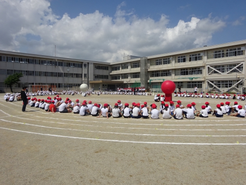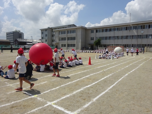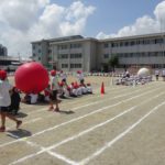 2限目は初めての全校練習でした。大玉送りです。紅白対抗種目でもあり、応援や歓声でいっぱいになりました。