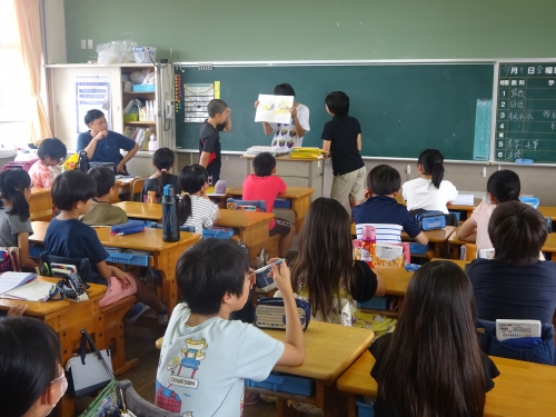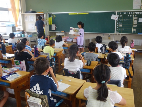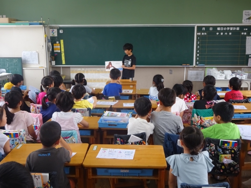 図書委員会の皆さんが、1・3・5年生教室にて絵本の読み聞かせをしてくれました。先日の委員会でコアラの会の皆さんから、絵本の持ち方、読み方等アドバイスをいただき、今日はコアラの会の皆さんに見守っていただきながらの読み聞かせでした。コアラの会の皆さんのように素敵な読み聞かせをしたいという図書委員会のみんなの思いから、実現しました。かなり緊張したようですが、みんな頑張ってくれました。ボランティアの皆さんの姿は、子どもたちの目標にもなっています。