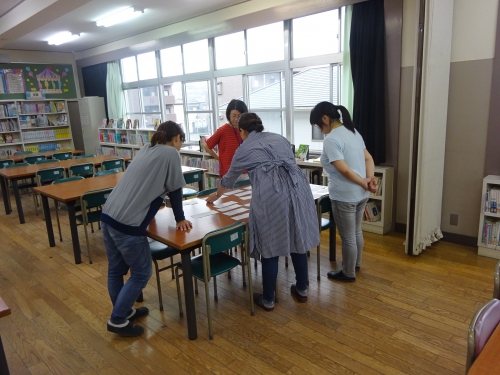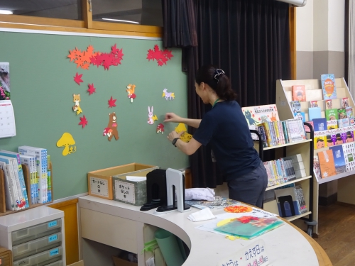 今日は四夢の会の皆さんの活動日です。読書室の掲示物等環境整備や本の修繕、だいよん祭での展示の準備等をしてくれています。いつもありがとうございます。