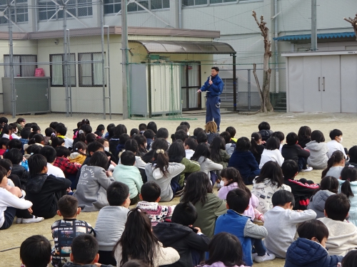 ホーム > 学校活動の様子 火災避難訓練 理科室からの火事を想定した避難訓練を行いました。どの学年も口にハンカチを充て、静かに運動場に集合できました。松阪中消防署の方に避難の様子について講評をしていただきました。最後に5・6年生の代表6人に消火器の使い方を教えてもらいました。 シェアする Twitter でシェア はてなブックマークに保存 LINE でシェア Facebook でシェア Pocket に保存 Feedly で購読 関連投稿 学校活動の様子 後期始業式 認証式 学校活動の様子 授業風景 学校活動の様子 授業風景 学校活動の様子 6年2組 出前授業 学校活動の様子 学習(がくしゅう)の様子(ようす)4年生(ねんせい)5年生(ねんせい) 学校活動の様子 今日(きょう)の最終見学地(さいしゅうけんがくち) 龍安寺(りょうあんじ) 前の投稿 委員会活動 次の投稿 体育委員会主催全校ケイドロ
