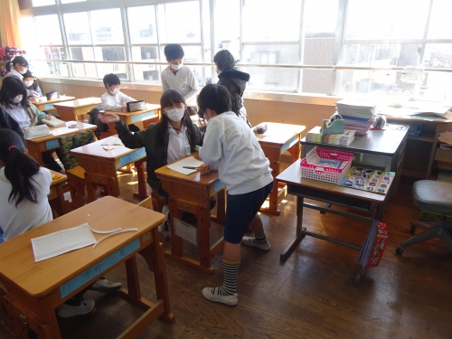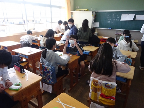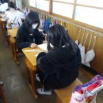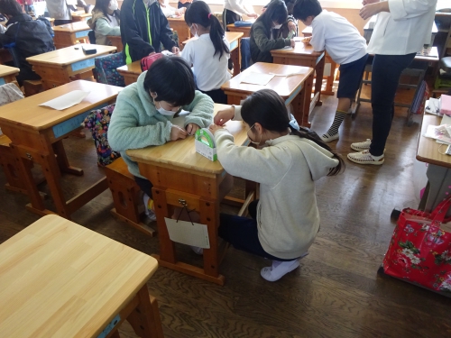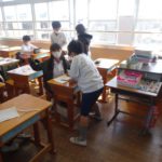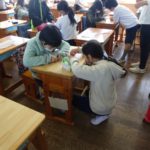 今日も5年生はマスク作りを行いました。今日は3組です。友だちと助け合って1人2枚のマスクが完成しました。自分の命を守るために今必要な学習です。子どもたちは協力しながら真剣に制作をしていました。そんな中ですが、カメラを持って教室に入ると笑顔でVサインをしてくれる子どもたちに何かホッとするものを感じます。