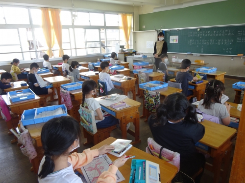 分散登校も2日目になりました。1班と2班の2グループが昨日とは時間を入れ替えての登校です。集合時間の調整連絡や登校の見守り等、保護者の皆様には大変お世話になっています。ありがとうございます。