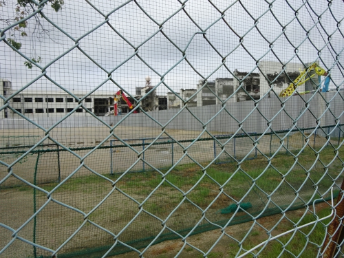 お隣の鎌田中学校の旧校舎の解体作業が始まっています。新校舎が完成した嬉しさはありますが、思い出いっぱいの旧校舎が解体されていく様子を見ていると、時代の流れとはいえとても寂しくなります。