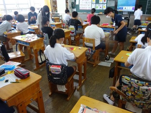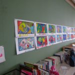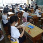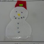 5年生での様子です。家庭では、玉結び・玉止めができることを目的に、自分の好きな絵を書いて、コースター作りを楽しんでいます。