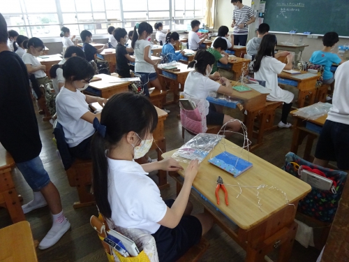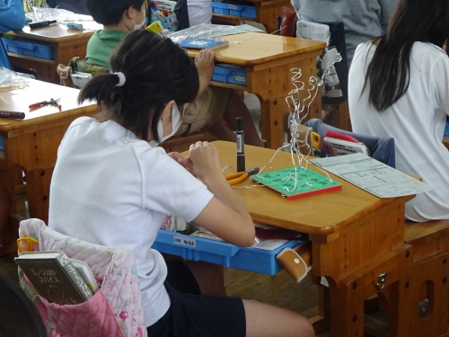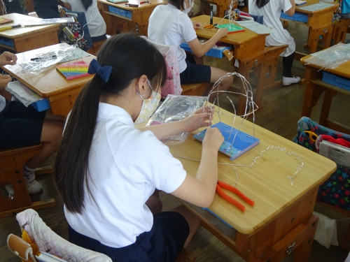 また図工では「立ち上がれワイヤーアート」と称し、針金を使ってオリジナルオブジェ作りを楽しんでいます。みんなとても集中して取り組んでいます。