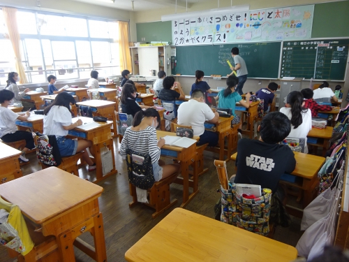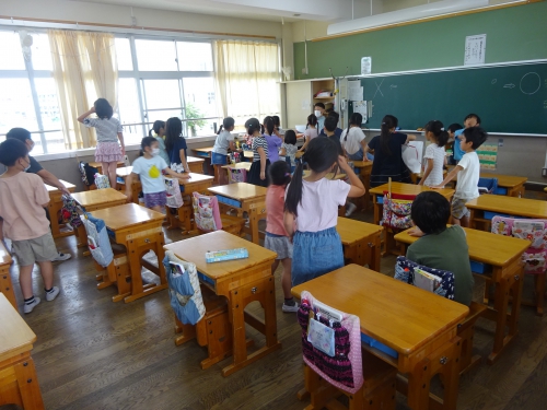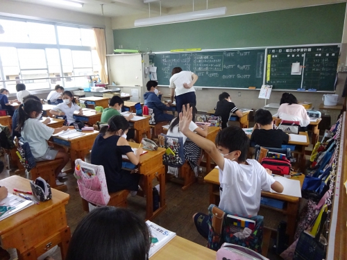 2年生では新しい友だちが増えました。さっそく第四小の紹介を兼ねた〇×クイズで友だちを迎えていました。