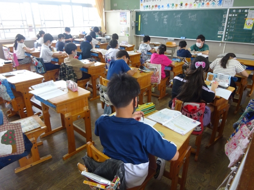 5年生では、学年の子どもたちのことをより深く知り、学年全体で子どもたちを見守っていこうという目的で、算数の時間に担任が別のクラスに入って授業をしています。色んな角度からたくさんの目で子どもたちを見守ることも大切にしています。子どもたちもたくさんの先生との出会いを楽しんでいます。