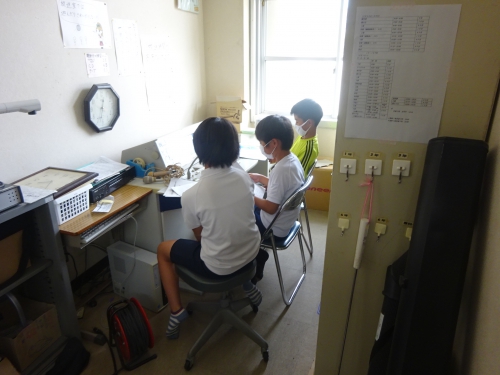 今年度は給食の時間、みんなが前を向いておしゃべりをせずに食べています。「第四radio」では、そんなみんなを楽しませようと7月下旬に先生たちがラジオのDJのようになって思い出話やクイズ等を出してくれました。そこで、児童会のメンバーが自分たちも同じようにみんなを楽しませることが出来ないかと「第四radio児童会編」をしてくれました。今日はこの3人が登場し楽しいトークをしてくれました。自分たちで企画・運営をしてくれる児童会のみんながとても頼もしく感じました。明日と金曜日にも開局予定です。給食の時間がさらに楽しいひとときになりました。