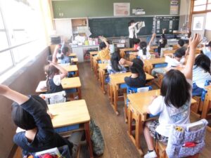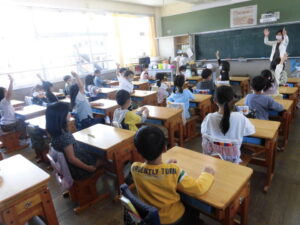 3個、4個、5個、6個、7個・・・と自分が思う数に手を挙げて、実際にむいて数を数えました。