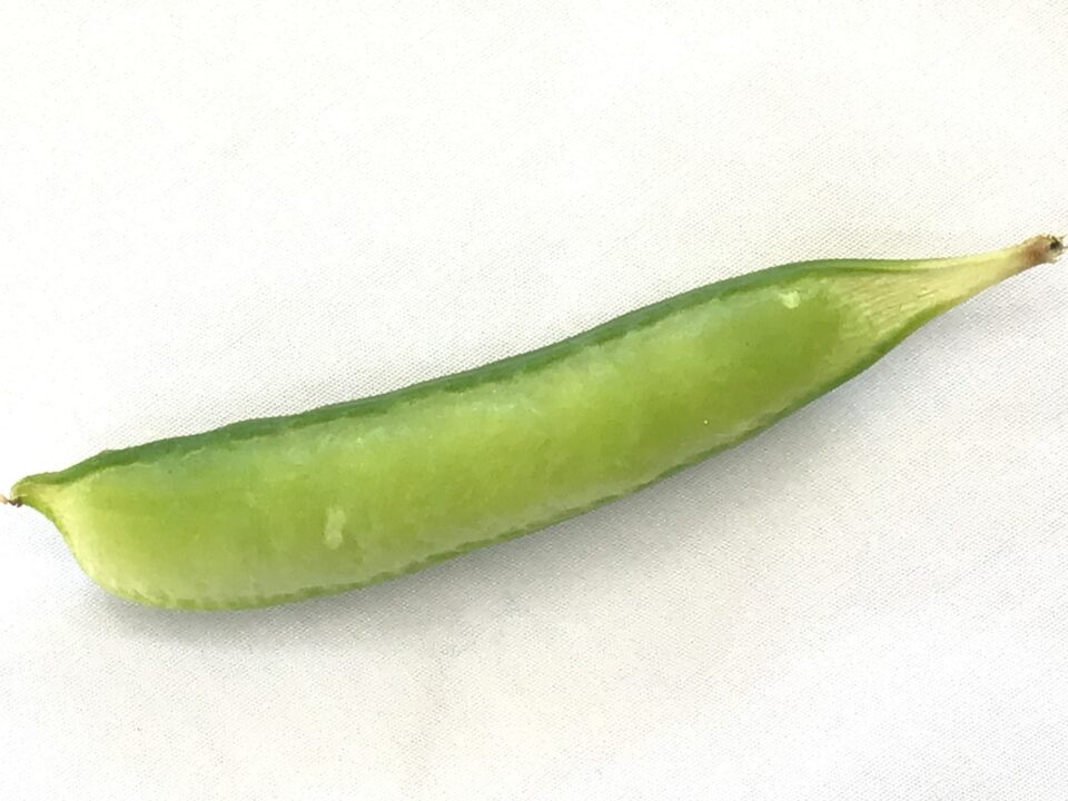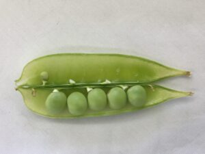 今日は、2年生で明日の給食の献立にある「実えんどうの卵とじ」で使う実えんどうから、えんどう豆を取り出し観察をしました。