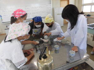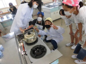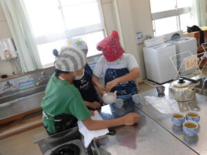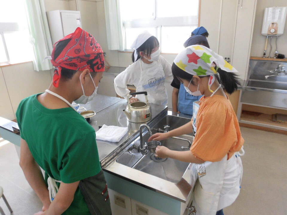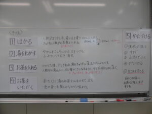 今日は、お湯を沸かして急須でお茶を淹れる学習です。