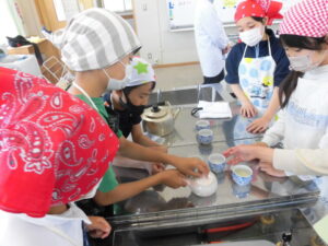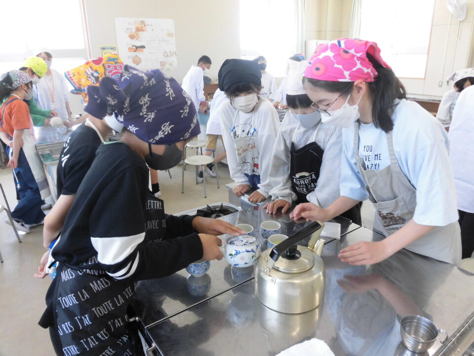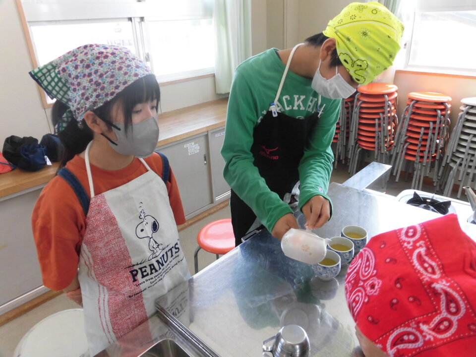 ごみの後始末を考えるとお茶パックを使うと便利なので、子どもたちはお茶パックに茶葉を入れたもので実習しました。