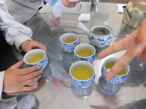 まずは、茶葉を直接急須に入れてお茶をつくるやり方を先生が実演しました。