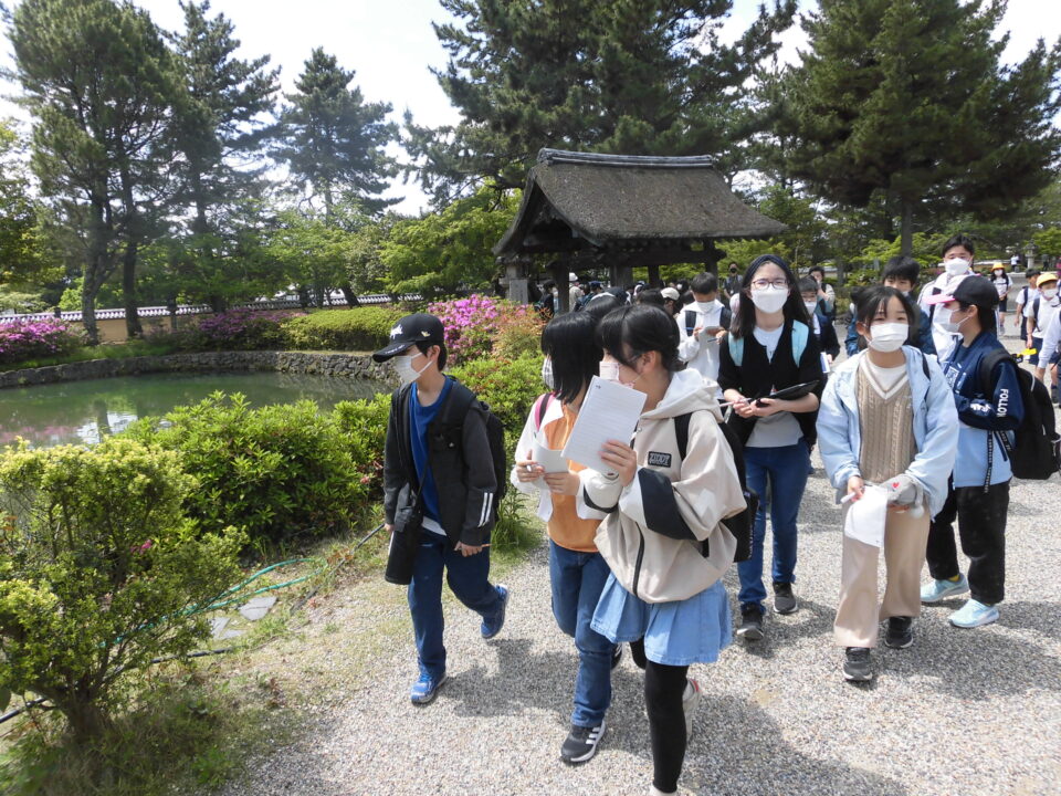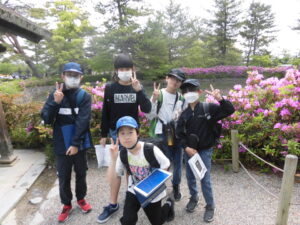 ガイドさんの案内でしっかり見て、聞いて、メモを書いて、写真係は撮って等、一生懸命学んでいました。