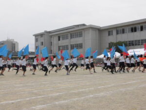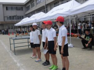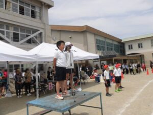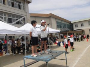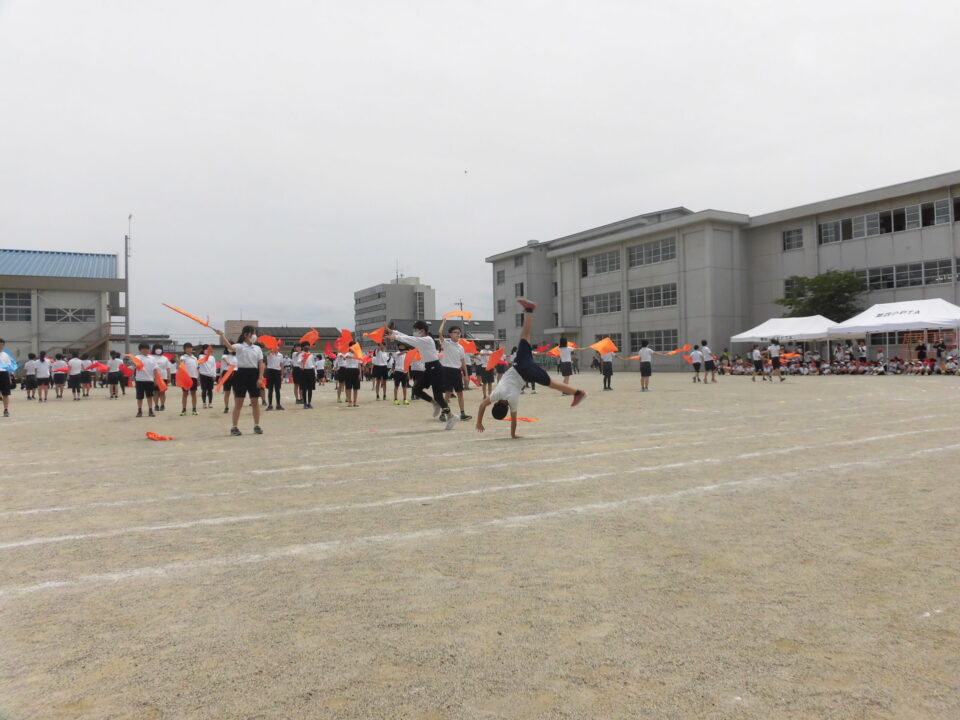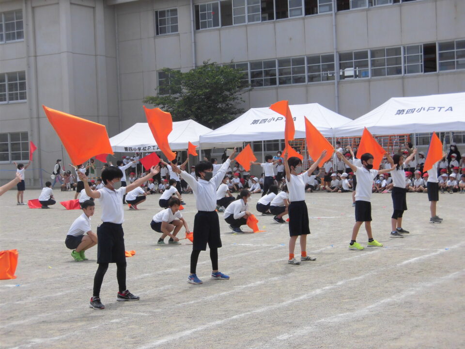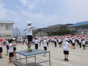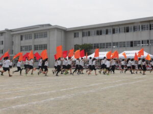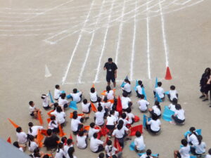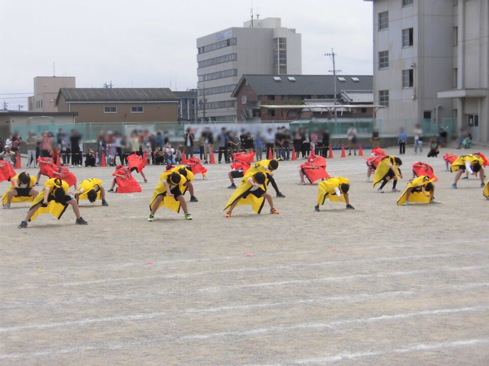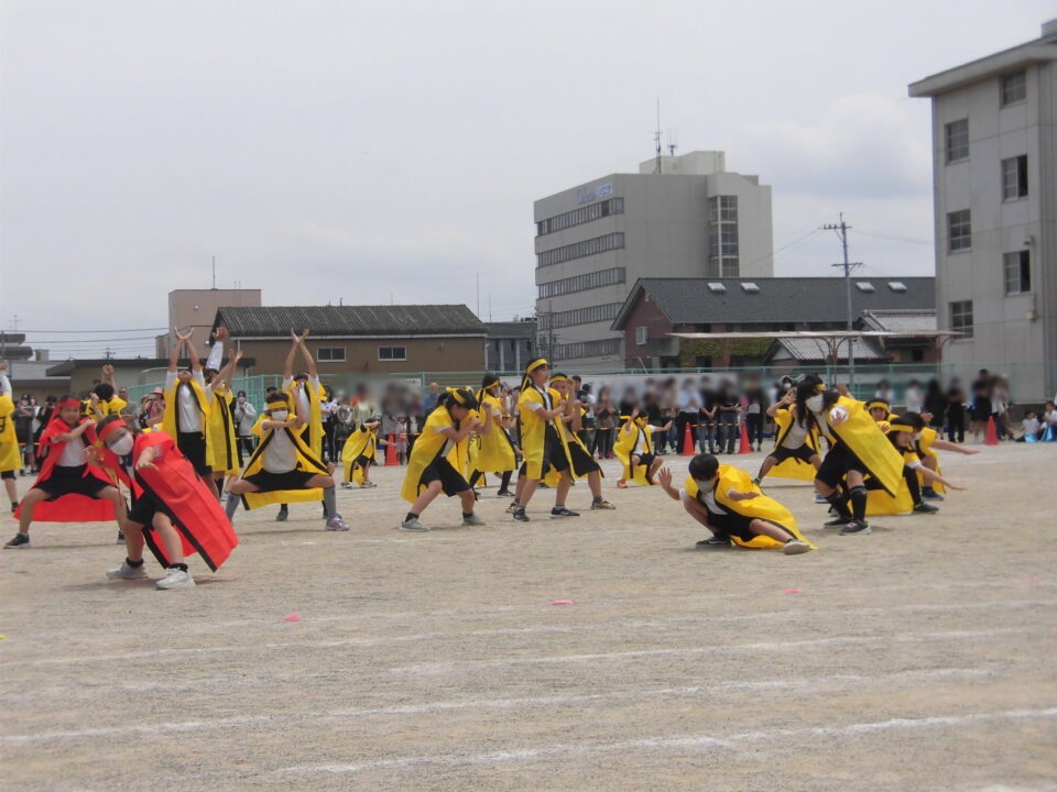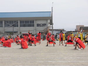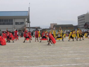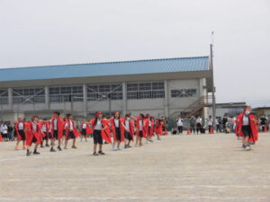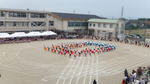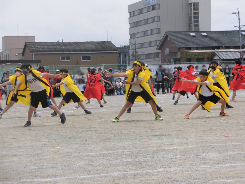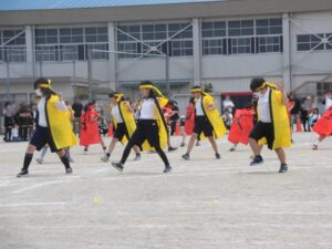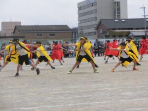 5年生は、かけ声がすてきな第四ソーランを披露してくれました。途中にボールを飛ばしてキャッチする赤白対抗戦もありました。ミニラグビーボールなので、キャッチするのも難しいし、地面にバウンドするとどの方向に飛ぶかわかりません。