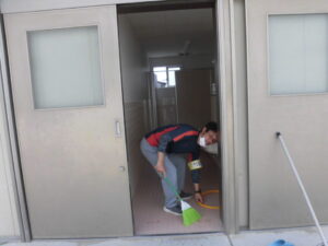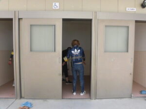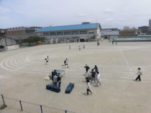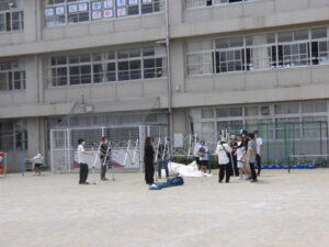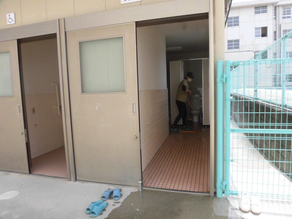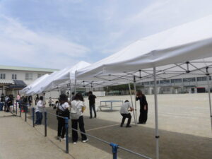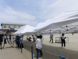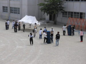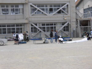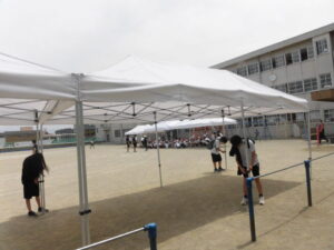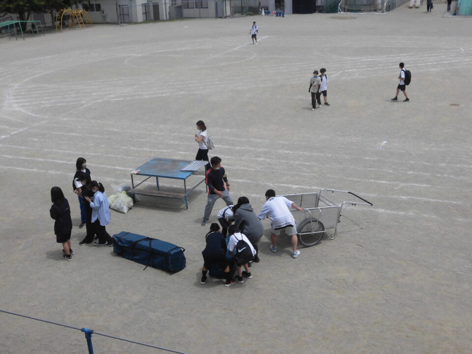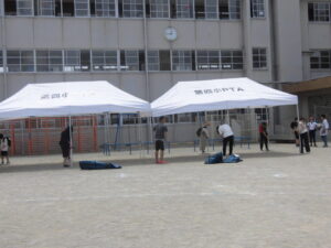 運動会うんどうかい終了しゅうりょうし、どもたちが昼食ちゅうしょく校舎内こうしゃないはいったら、PTA本部執行部ほんぶしっこうぶかたやPTA保体部ほたいぶ方々かたがた、またほかにも鎌中かまちゅう生徒せいとさんたちが元通もとどおりにするために、テントやおもりの片付かたづけ、トイレ掃除等そうじとうおこなっていただきました。
