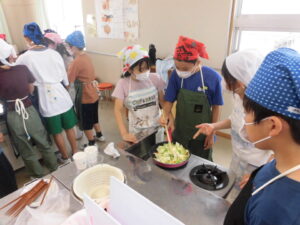 包丁を使ったり、火を使ったりするので、CSボランティアの方にも教えていただいたり、見守っていただいたりしました。ありがたいです。