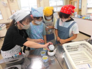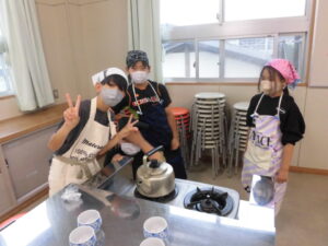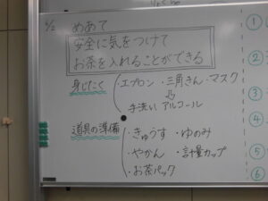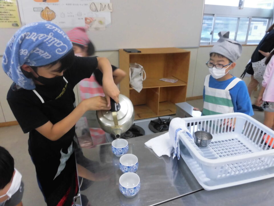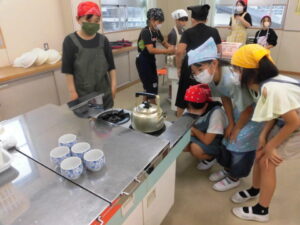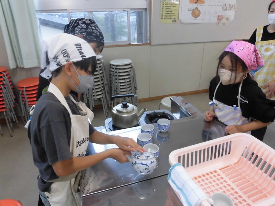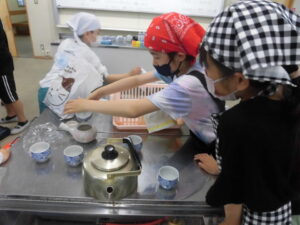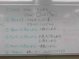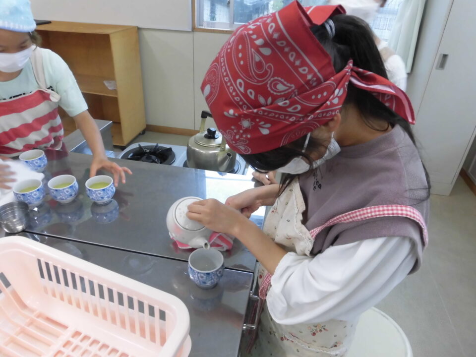 お茶の淹れ方をしました。お湯を沸かしますが、沸騰したお湯を使うので、気を付けて慎重に注ぎました。