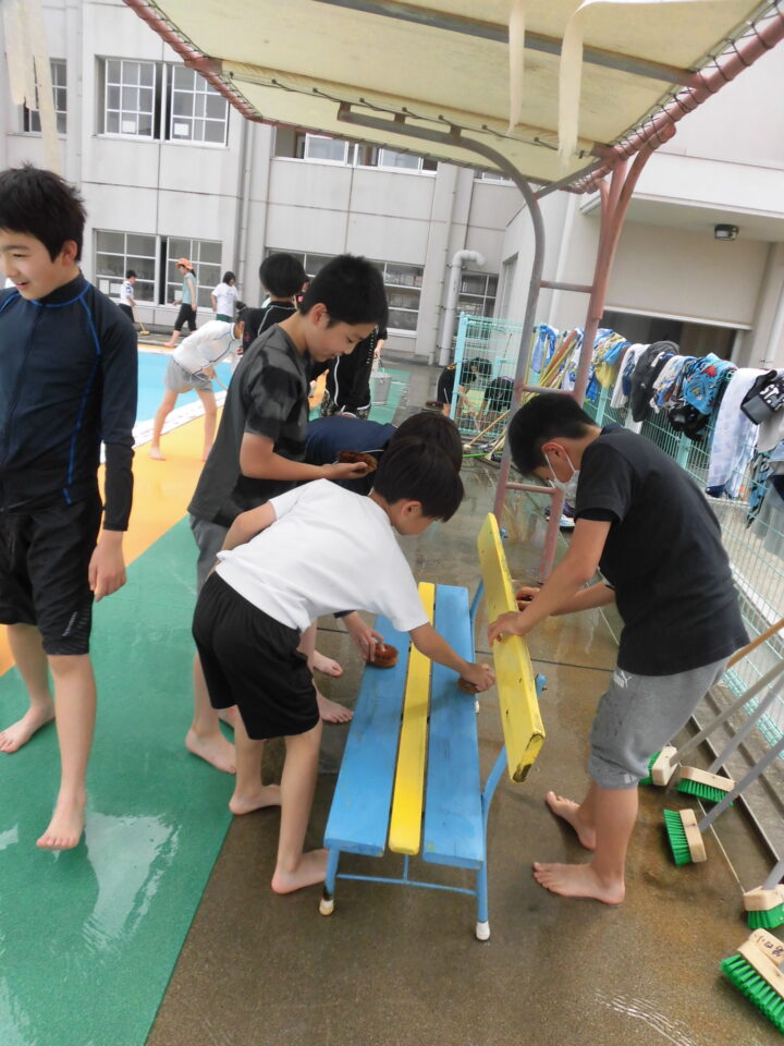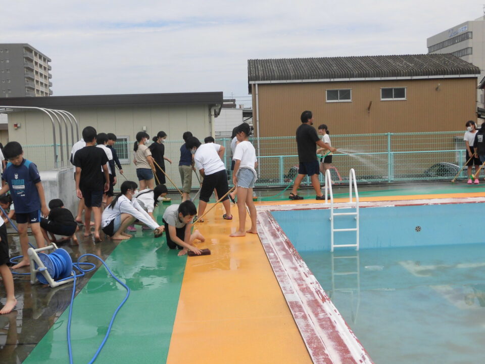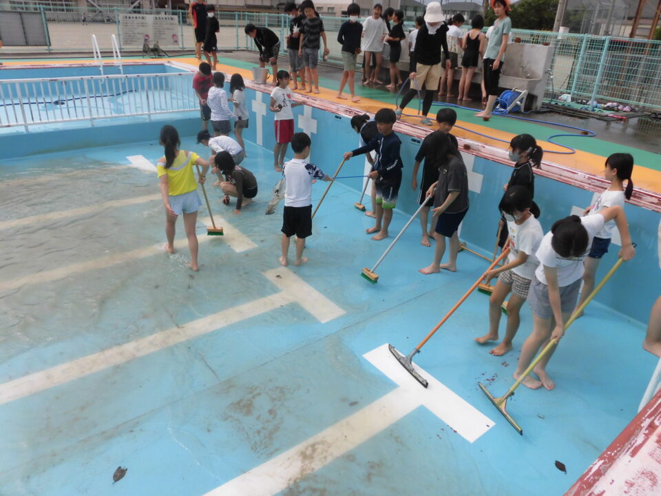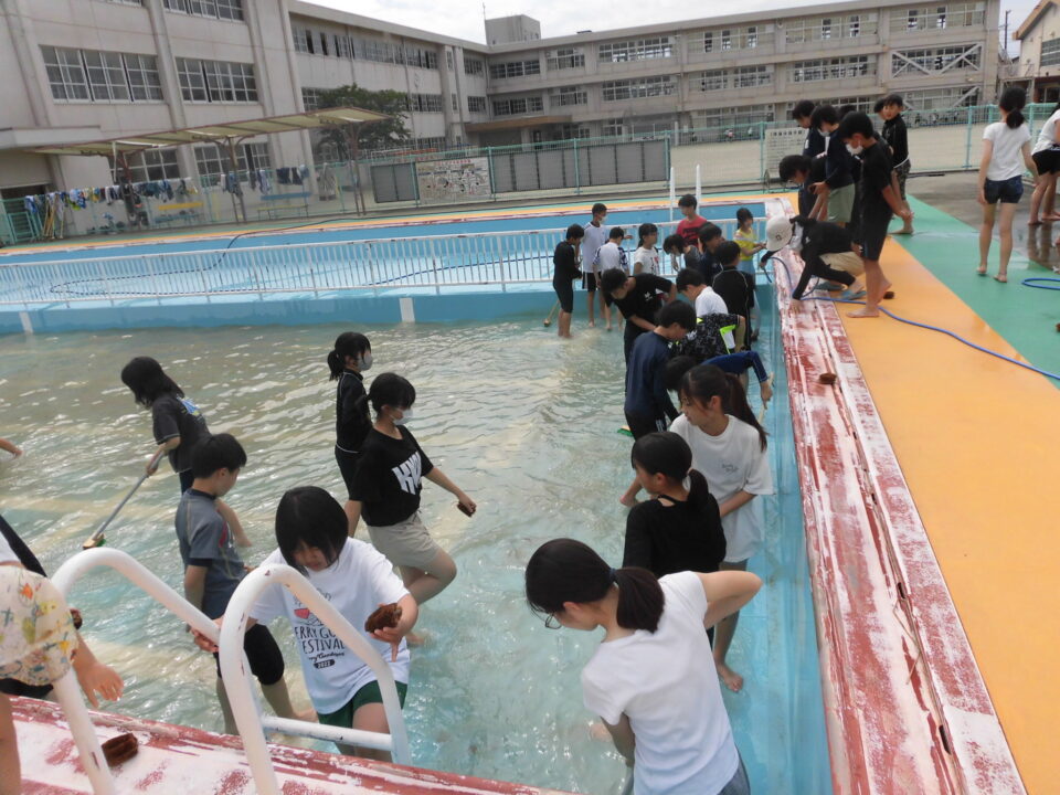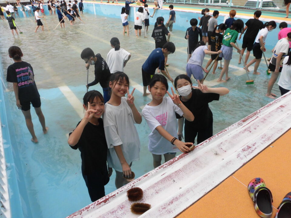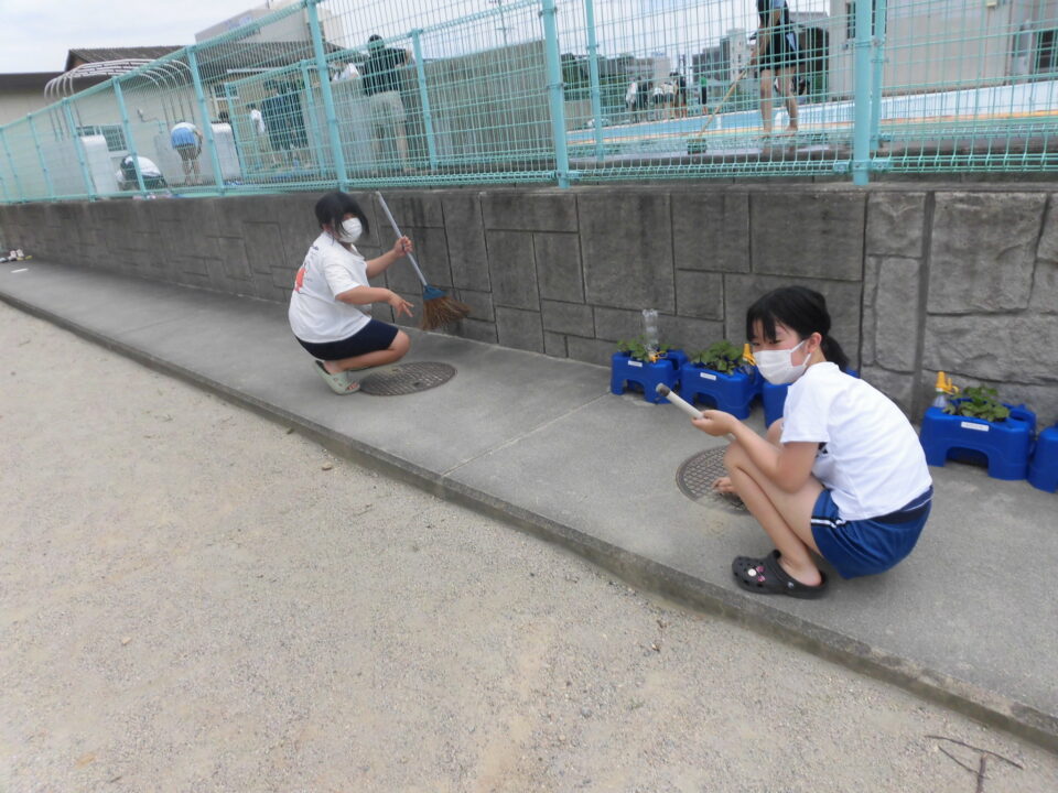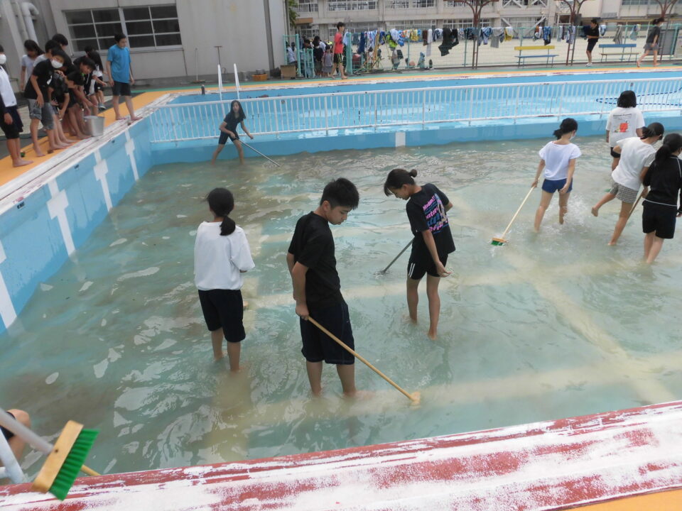 そのために、今日は午後から6年生の子たちがプール掃除をしました。