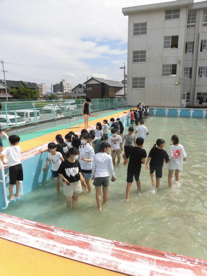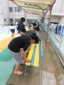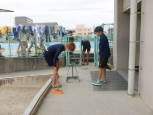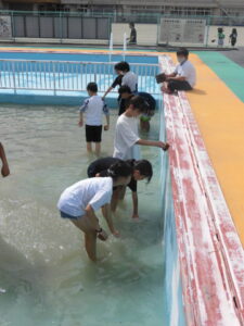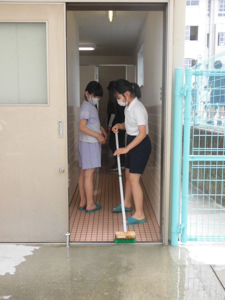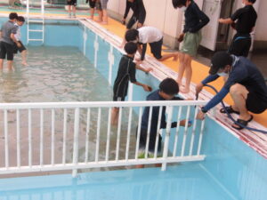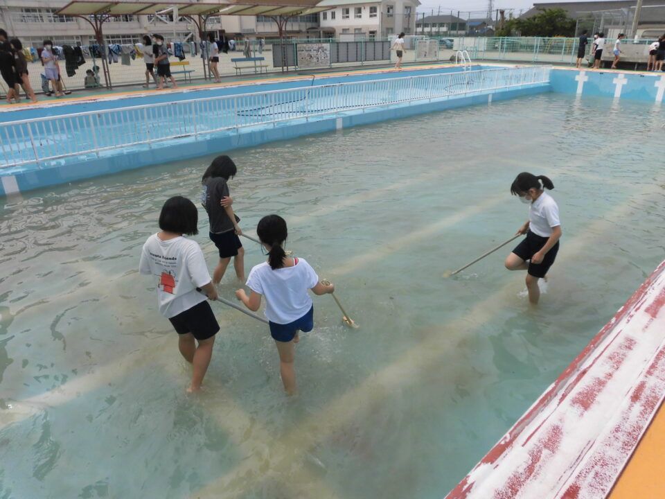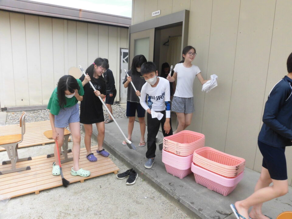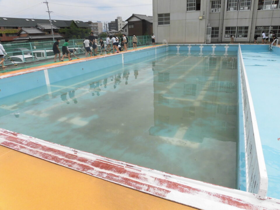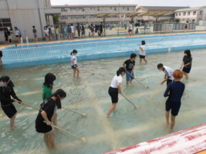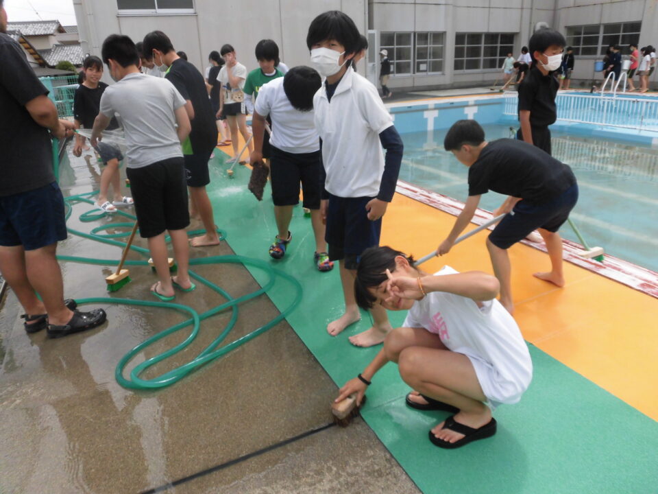 そのために、今日は午後から6年生の子たちがプール掃除をしました。