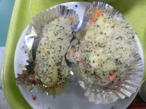 ホーム > 学校活動の様子 理科(りか) 3年生(ねんせい)ヒマワリ・ホウセンカを植(う)えたよ! 3年生(ねんせい)では、理科(りか)でヒマワリとホウセンカを育(そだ)てて、観察(かんさつ)をしていきます。 ポットで苗(なえ)が大(おお)きくなってきたので、畑(はたけ)に植(う)え替(か)えをしました。 土(つち)の中(なか)にミミズを見(み)つけました。畑(はたけ)の土(つち)には、栄養(えいよう)がたくさんあることが分(わ)かりますね。 今日(きょう)の給食(きゅうしょく)は・・・パンの日(ひ)! 黒糖(こくとう)パン、牛乳(ぎゅうにゅう)、さけの香草焼(こうそうや)き、新(しん)じゃがのポトフでした。 さけの香草焼(こうそうや)きは、低学年(ていがくねん)と高学年(こうがくねん)の子(こ)の大(おお)きさが違(ちが)います。 お皿(さら)に並(なら)べてみました。 シェアする Twitter でシェア はてなブックマークに保存 LINE でシェア Facebook でシェア Pocket に保存 Feedly で購読 関連投稿 学校活動の様子 / コミュニティ・スクール 運動場(うんどうじょう)をきれいに整地(せいち)していただきました。 学校活動の様子 体育参観に向けて 学校活動の様子 まつさかペットボトルロケット大会 学校活動の様子 授業風景 学校活動の様子 後期始業式・認証式 学校活動の様子 着衣水泳(ちゃくいすいえい)1年生(ねんせい) 前の投稿 放課後学習会(ほうかごがくしゅうかい)(2.3年生(ねんせい)) 次の投稿 土性沙羅(どしょうさら)さん来校(らいこう)(にっこり集会(しゅうかい))