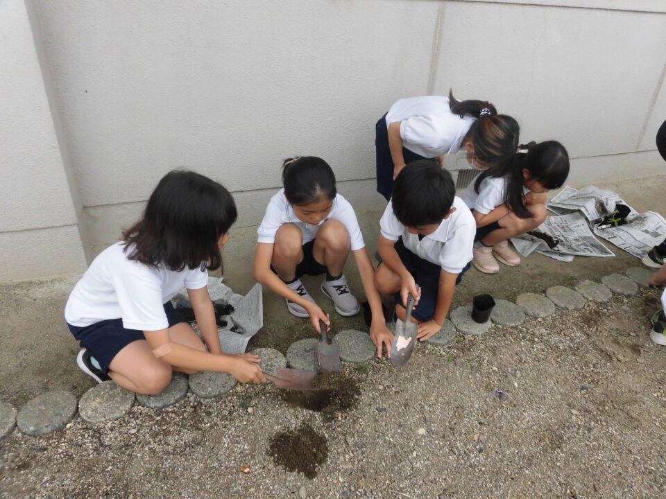 ホーム > 学校活動の様子 理科(りか) 3年生(ねんせい)ヒマワリ・ホウセンカを植(う)えたよ! 3年生(ねんせい)では、理科(りか)でヒマワリとホウセンカを育(そだ)てて、観察(かんさつ)をしていきます。 ポットで苗(なえ)が大(おお)きくなってきたので、畑(はたけ)に植(う)え替(か)えをしました。 土(つち)の中(なか)にミミズを見(み)つけました。畑(はたけ)の土(つち)には、栄養(えいよう)がたくさんあることが分(わ)かりますね。 今日(きょう)の給食(きゅうしょく)は・・・パンの日(ひ)! 黒糖(こくとう)パン、牛乳(ぎゅうにゅう)、さけの香草焼(こうそうや)き、新(しん)じゃがのポトフでした。 さけの香草焼(こうそうや)きは、低学年(ていがくねん)と高学年(こうがくねん)の子(こ)の大(おお)きさが違(ちが)います。 お皿(さら)に並(なら)べてみました。 シェアする Twitter でシェア LINE でシェア Facebook でシェア Pocket に保存 関連投稿 学校活動の様子 しょんがい踊(おど)りの練習(れんしゅう)をしました。6年(ねん)3年(ねん) 学校活動の様子 6年生(ねんせい) 地域学習(ちいきがくしゅう)4日目(よっかめ) 学校活動の様子 修学旅行 スペイン村出発 学校活動の様子 1年生(ねんせい)秋見(あきみ)つけ、中部台公園(ちゅうぶだいこうえん)でお弁当(べんとう)! 学校活動の様子 熱中症(ねっちゅうしょう)の予防(よぼう)をしていきましょう! 学校活動の様子 4年生遠足(ねんせいえんそく) 本居宣長記念館等(もとおりのりながきねんかんとう) 前の投稿 放課後学習会(ほうかごがくしゅうかい)(2.3年生(ねんせい)) 次の投稿 土性沙羅(どしょうさら)さん来校(らいこう)(にっこり集会(しゅうかい))